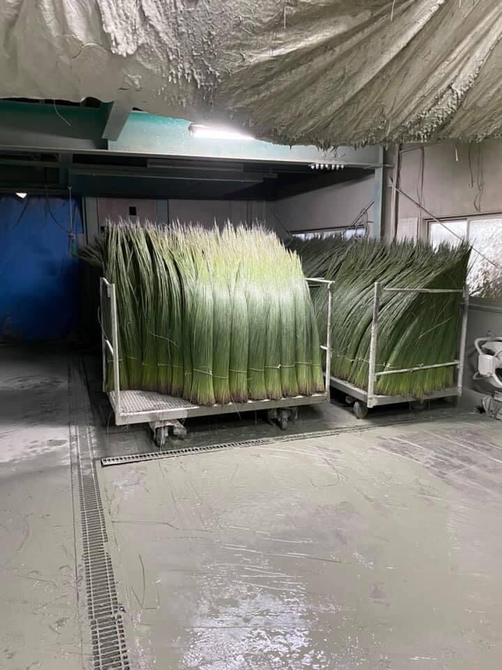 熟成では刈り取り後に半年以上寝かせることにより、色変わりの原因になる窒素が少しずつ抜けます。手間暇かけて織り上げた寝ござは、ゆっくりと飴色で味のある色に落ち着きます。